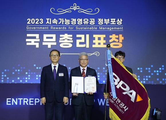 부산항만공사(BPA)가 지난 14일 ‘2023 지속가능경영 유공 정부포상’ 시상식에서 공공부문에서 최고성적을 얻어 유일하게 ‘국무총리 표창’을 수상했다고 밝혔다.