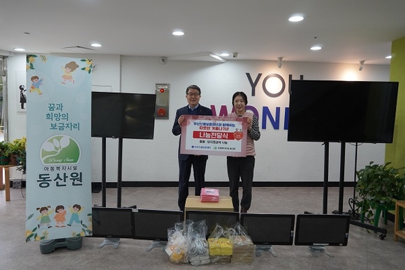 부산신용보증재단이 지난 14일 아동복지시설 ‘동산원’에 TV·PC등의 물품과 기부금을 전달했다고 밝혔다.