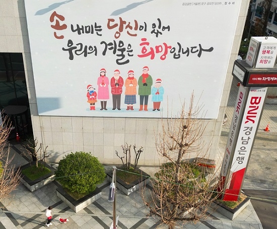 BNK경남은행이 추운 겨울 따뜻함을 지역민과 함께 나누기 위해 공감글판을 내걸었다.