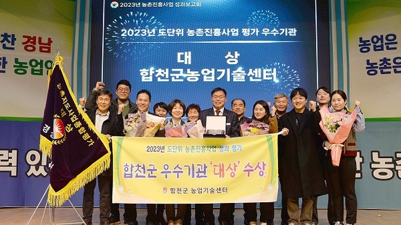 합천군은 지난 15일 경남도에서 주관한 올해 농촌진흥사업 평가에서 도단위 최우수기관(대상)으로 선정돼 도지사 표창패와 대상기를 전수 받았다.