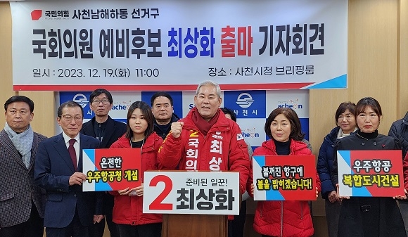 최상화 사천·남해·하동선거구 국회의원 예비후보가 19일 시청 브리핑룸에서 기자회견을 갖고 내년 총선 출마의 변을 밝혔다.