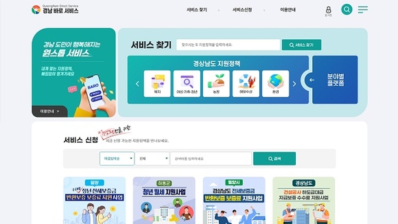 경남도는 각종 도민 지원정책을 온라인으로 간편하게 신청할 수 있는 '경남바로서비스'에 도 지원정책을 통합 안내하는 서비스를 추가해 20일부터 제공한다고 밝혔다.