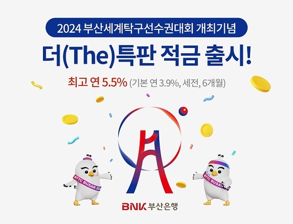 BNK부산은행이 20일 2024부산세계탁구선수권대회 개최를 기념해 더(The)특판 적금을 출시한다고 밝혔다.
