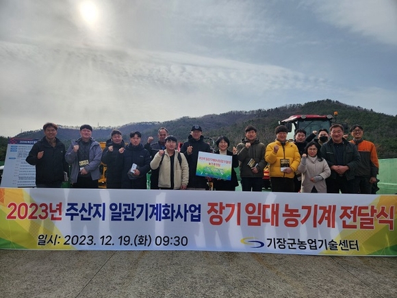 ‘주산지 일관기계화사업’은 밭작물 공동경영체 조직에게 농작업 일관기계화에 필요한 농업기계를 5년간 장기 임대하는 사업이다. 임대 대상 농기계는 농업용트랙터를 포함해 15종 16대(사업비 2억원)이다. 지난 19일 기장군농업기술센터에서 사업수행 기관인 기장영농조합법인과 전달식을 진행하면서 본격적인 사업의 시작을 알렸다.