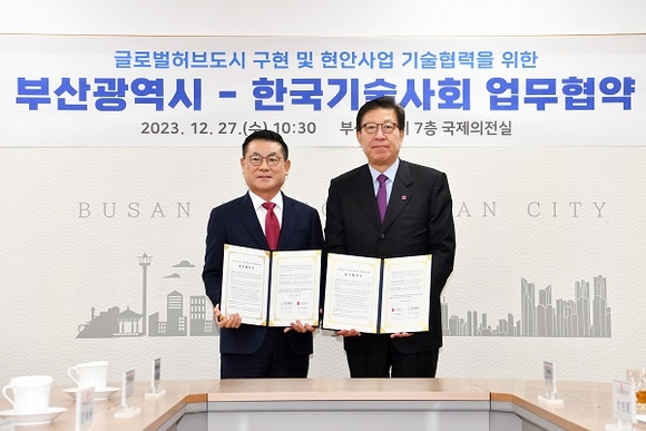 부산시가 27일 한국기술사회와 ‘글로벌허브도시 구현 및 현안사업 기술협력을 위한 업무협약’을 체결했다고 밝혔다.