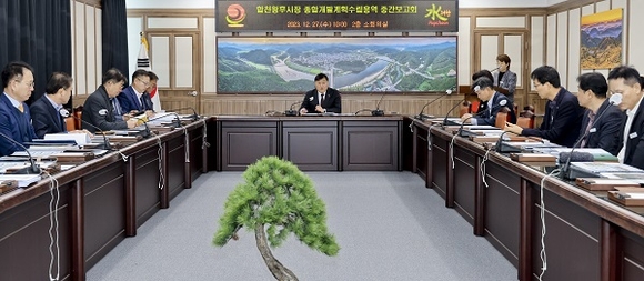 경남 합천군은 27일 군청 2층 소회의실에서 합천왕후시장 종합개발계획수립 용역 중간보고회를 가졌다.