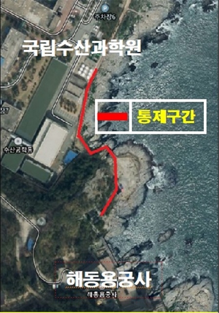 통제구간은 해동용궁사부터 국립수산과학원으로 이어지는 해안로 일부로 해동용궁사 내 지장암 가는 통로부터 국립수산과학원 옹벽으로 이어지는 약 350m 구간이다.