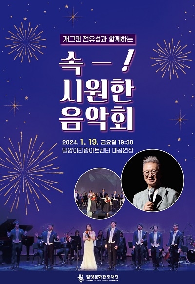 첫 공연으로 오는 1월 19일, 개그맨 전유성과 함께하는 '속 시원한 음악회'로 전 연령층이 웃고 즐길 수 있는 유쾌한 클래식 공연을 진행한다.