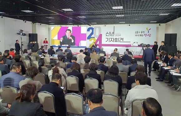 나동연 양산시장은 4일 오전 양산비즈니스센터 1층 전시실에서 신년 기자회견을 열고 올해 시정방향 계획을 발표했다.