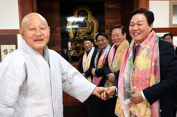 박완수 경남도지사는 갑진년 새해를 맞아 4일 오후 양산 통도사를 방문해 조계종 종정 성파스님, 통도사 주지 현덕스님과 새해 덕담을 나눴다.