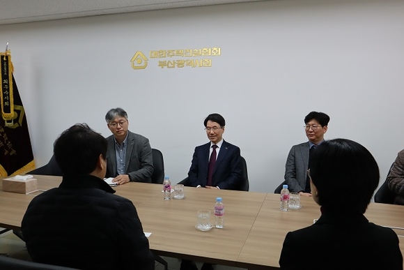 부산도시공사 김용학 사장이 지난 4일 새해를 맞아 대한건설협회 부산시회, 부산시건축사회, 대한주택건설협회 부산시회 등 지역 건설업 대표기관들을 방문해 건설업계와 원활한 소통과 협의 체계 구축에 힘썼다.