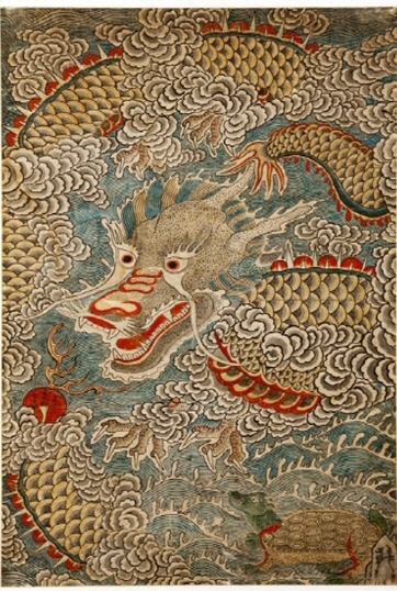 용거북도는 길상의 상징인 용과 거북이 ‘액을 막고 오랫동안 부와 권력을 누린다’라는 의미를 가지고 있다.