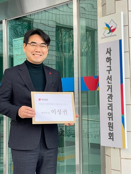 이성권 전 부산시 경제부시장이 9일 제22대 국회의원 총선거 부산 사하갑 국민의힘 예비후보로 등록하고 본격적인 총선 행보에 나섰다.