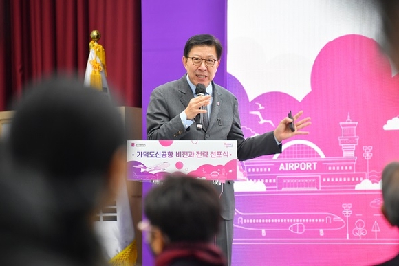 부산시는 11일 오전 부산시청 대회의실에서 가덕도신공항 비전과 전략 선포식을 개최했다. 이는 지난해 국토부가 '가덕도신공항 건설 기본계획'을 고시함에 따라 부산이 지향하는 가덕도신공항의 미래 비전을 제시하고 구체적인 발전 전략과 추진 과제를 대외에 공표하기 위해 마련됐다.