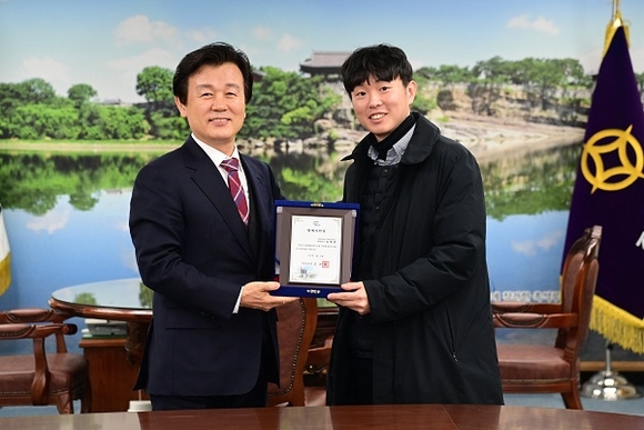 경남 진주시는 지난 10일 시청 기업인의 방에서 김명훈 국립진주박물관 학예사에게 명예시민증을 수여했다.