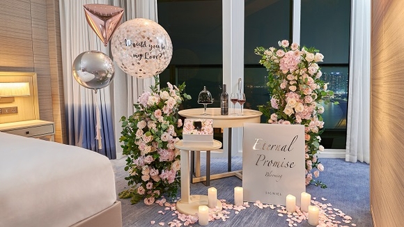 또한 결혼을 앞두고 프러포즈를 고민하는 예비부부를 위해 시그니엘 부산에서 선보이는 프러포즈 패키지 ‘이터널 프로미스(Eternal Promise)’는 아름다운 오션뷰와 함께 시그니엘에서만 경험할 수 있는 이루어진 데커레이션들로 감동적인 프러포즈를 선사할 수 있다. 프러포즈의 정석을 탄탄하게 갖춘 베이직 상품은 시그니엘 프리미어 오션뷰 또는 프리미어 스위트 오션뷰 두 가지 객실 타입 상품이다. 시그니엘 웰컴 어메니티 초콜릿과 와인이 제공되며 아치형 플라워 장식과 플라워 햄퍼 박스가 포함된 프러포즈 데커레이션 서비스가 제공돼 프러포즈 준비의 고민을 덜 수 있다.
