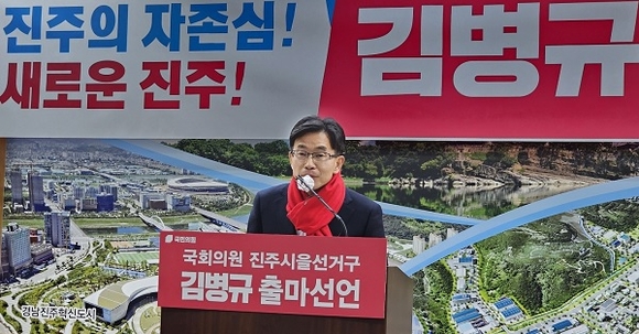경남도 경제부지사를 역임한 김병규 예비후보(국민의힘 진주을)가 16일 오후 진주시청 브리핑룸에서 기자회견을 열고 제22대 총선 출마를 공식 선언했다.