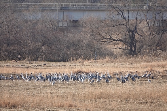 화포천습지 일원에서 재두루미 무리가 집단을 이뤄 발견되기는 이번이 처음이다.