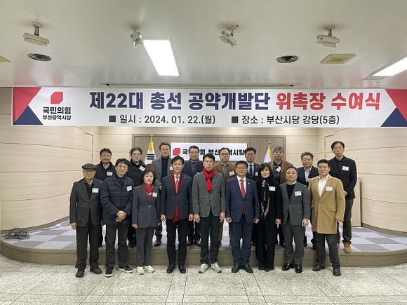 국민의힘 부산시당이 22일 제22대 국회의원 선거를 앞두고 총선 공약개발단 위촉장 수여식 및 1차 회의를 개최했다고 밝혔다.