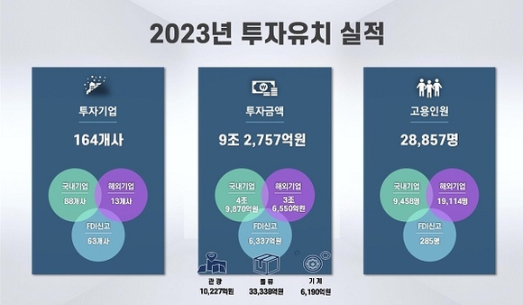 도는 지난해 투자유치 9조 2757억 원을 기록해 전년 대비 43.4% 증가한 역대 최대 투자액을 달성했다. 민선 8기 출범 이후 실적은 12조 8285억 원으로 어려운 경제 상황에서 지역 경제를 빠르게 회복시킨 원동력이 됐다.