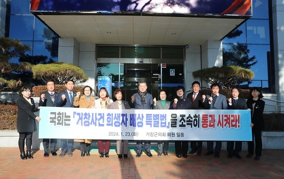 군의원들은 결의문을 통해 “유족들이 국가를 상대로 제기하였다가 소멸시효가 지나 원고 패소한 손해배상 청구소송을 대법원이 거창사건은 민간인 집단 희생사건으로 소멸시효가 적용되지 않는다고 원심을 파기하고 사건을 원심법원에 환송하였다”며 “정부와 국회는 거창사건 희생자 배상 입법이 과거 청산의 필수 과정이자 시대적 사명임을 인식하고 배보상 관련 문제 해결에 적극 나서야 한다”고 목소리를 높였다.