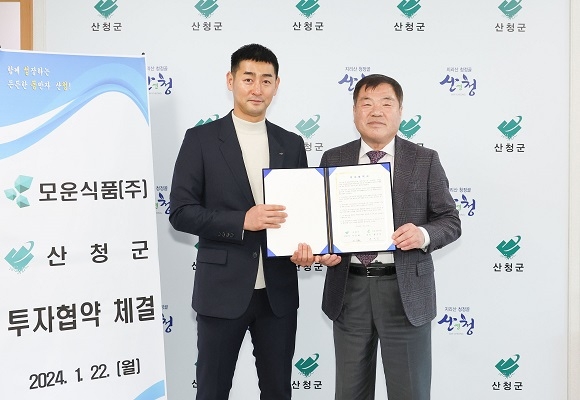 군에 따르면 지난 22일 군수실에서 모운식품㈜ 농업회사법인과 곡물제조공장 건립을 위한 투자협약을 체결했다.