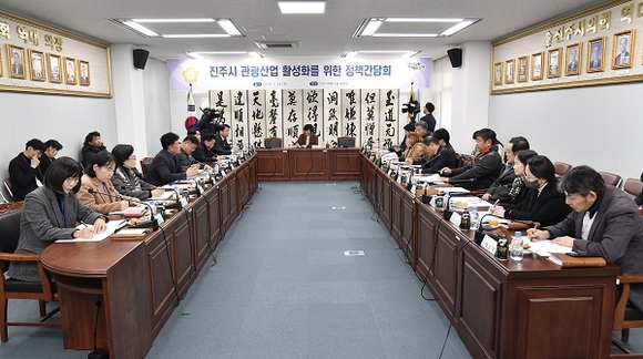 23일 진주시의회에서 '진주시 관광산업 활성화를 위한 정책간담회'가 열려 지역 관광산업의 체질 개선과 성장하는 미래를 위한 정책 방안이 논의됐다.