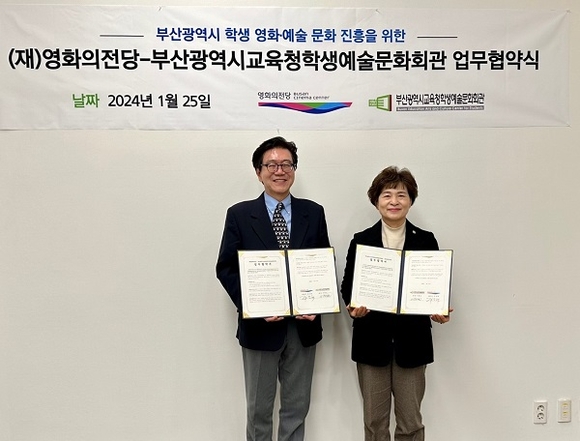 영화의전당과 부산시교육청학생예술문화회관이 25일 영화의전당 시네마운틴에서 업무협약을 체결했다.