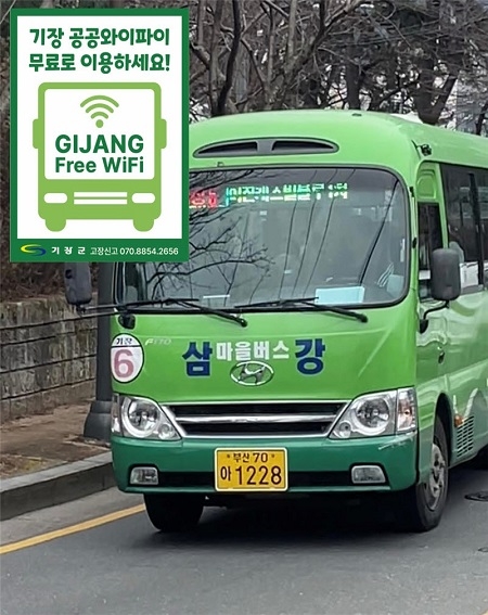군은 지역 내 전체 마을버스 24대에 공공와이파이 서비스망을 구축하고 다음달 1일부터 본격적인 개통에 들어간다. 승객들은 마을버스를 탑승한 후 스마트폰이나 노트북 등 와이파이(Wi-Fi) 설정에서 ‘GIJANG Free WiFi’를 선택하면 무선인터넷을 이용할 수 있다.