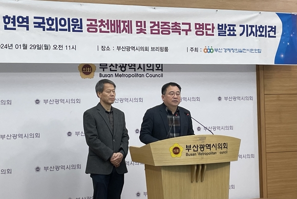 부산경제정의실천시민연합이 제22대 총선을 앞두고 지역 국회의원들에 대한 공천배제 및 검증촉구 명단을 발표했다.