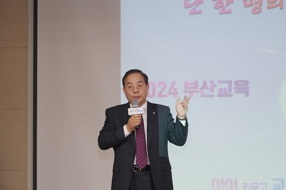 하윤수 부산시교육감은 29일 수영구청 구민홀 2층에서 개최된 ‘수영구 부산형 늘봄 확대 정책 설명회’에 참석했다.