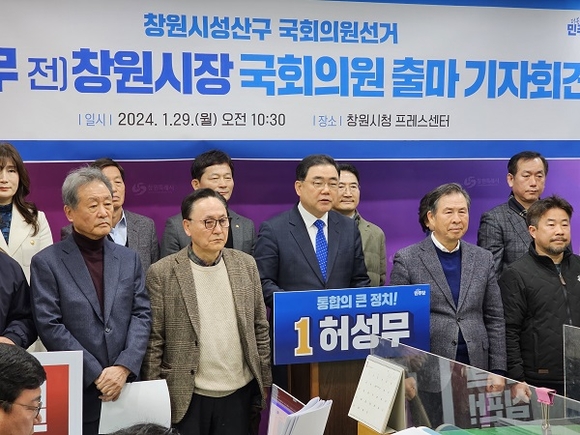 허성무 전 창원시장이 29일 오전 시청 프레스센터에서 기자회견을 갖고 제22대 국회의원선거 창원시성산구 지역 출마를 선언했다.
