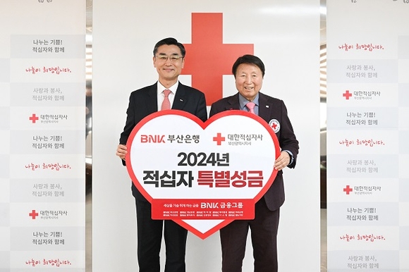 BNK부산은행이 지난 29일 대한적십자사 부산지사에서 지역사회 나눔 활동 실천의 일환으로 2024년 대한적십자사 특별성금 전달식을 가졌다고 밝혔다.