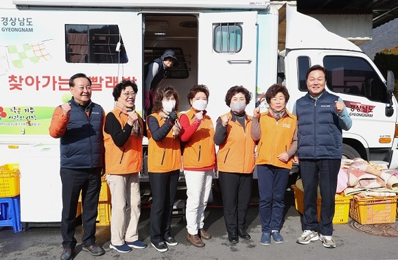 한편 찾아가는 빨래방서비스는 이불 등 어르신들이 가정에서 직접 하기 어려운 대형빨래의 세탁을 돕기 위해 특수제작한 차량이 직접 방문하여 무료로 세탁을 해주는 복지서비스로, 홀로 어르신들의 생활환경을 개선하기 위해 전액 도비로사업을 진행하고 있으며 경남도가 광역도 최초로 추진하고 있다.