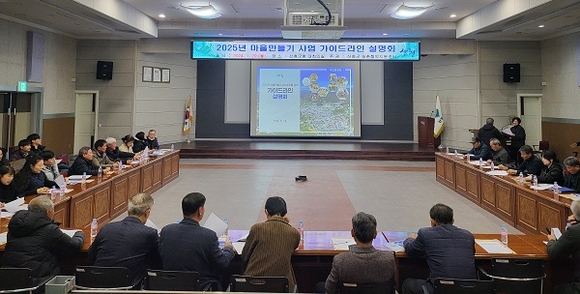 산청군은 지난 29일 오후 군청 대회의실에서 '2025년 마을만들기사업 가이드라인 설명회'를 개최했다.