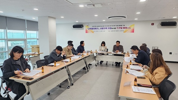 경남 김해시는 2일 제2청사 소회의실에서 교육부의 교육발전특구 시범지역 지정 공모를 위한 3차 TF팀 회의를 가졌다.