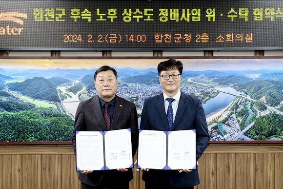 경남 합천군은 지난 2일 노후상수도 시설개선 및 유수율 향상을 위해 한국수자원공사와 '합천군 후속 노후상수도 정비사업' 협약을 체결했다.