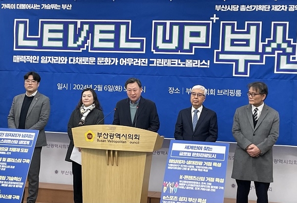 더불어민주당 부산시당 총선기획단이 6일 시의회 브리핑룸에서 기자회견을 열고 제2차 총선공약을 발표했다.