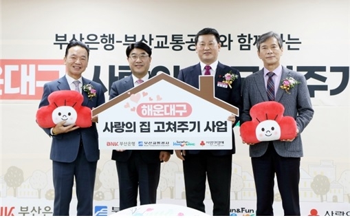 부산교통공사가 7일 해운대구 문화복합센터에서 부산은행, 부산사회복지공동모금회, 해운대구청과 함께 주거환경 개선을 위한 ‘해운대구 사랑의 집 고쳐주기’ 사업 발대식을 개최하고 재송동·반여동 소재 노후주택 수리에 동참했다.