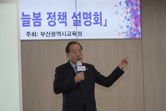 설명회는 하 교육감이 직접 일타 강사로 나서 단 한 명의 학생도 놓치지 않는 맞춤형 교육·돌봄 서비스 ‘부산형 늘봄 정책’ 전반에 대해 강의했다. 돌봄을 희망하는 초등학교 1∼3학년을 모두 수용하기 위한 공간 확보 방안, 학습형 방과 후 프로그램 운영 방안 등을 설명했다.