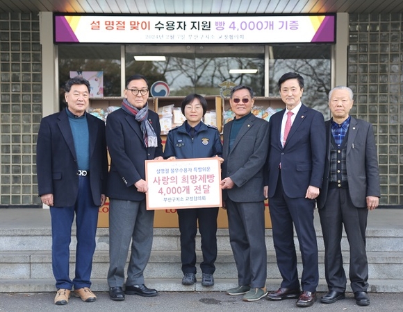 부산구치소가 7일 부산구치소 교정협의회로부터 설을 맞이해 교정위원들의 모금으로 마련한 수용자 특식용 빵 4000개를 기증받았으며 교정위원의 교정에 대한 이해를 돕기 위한 시설 참관을 실시했다고 밝혔다.
