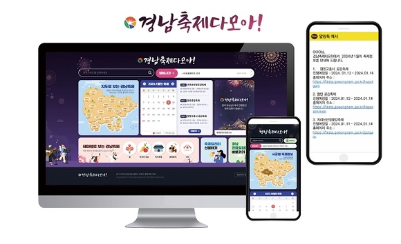 관광객들이 도내 지역축제 정보를 한눈에 알아보고 쉽게 찾을 수 있게 시군 축제 정보를 통합 제공할 뿐만 아니라 편리하게 경남 축제 정보를 받아 볼 수 있도록 사전 알리미 기능을 추가해 신청자에게 축제 일정 등을 카카오톡으로 전송한다.