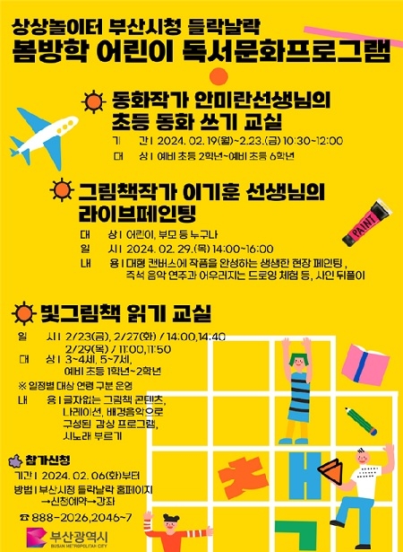 부산시가 봄방학을 맞이해 오는 19일부터 29일까지 '부산시청 들락날락'에서 어린이와 학부모를 대상으로 다채로운 독서문화프로그램을 운영한다고 밝혔다.