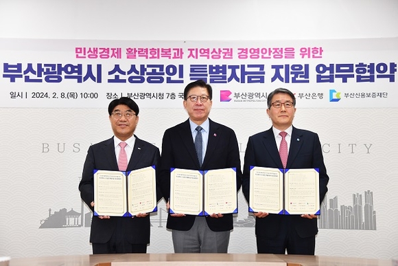 부산시는 8일 부산은행, 부산신용보증재단과 민생경제 활력회복과 지역상권 경영안정을 위한 ‘소상공인 특별자금 지원 업무협약’을 체결했다고 밝혔다.