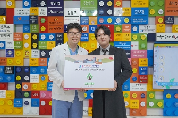 드림피아 최용환 대표가 지난 7일 지난해에 이어 두 번째로 부산대어린이병원을 찾아 기부금을 전달했다.