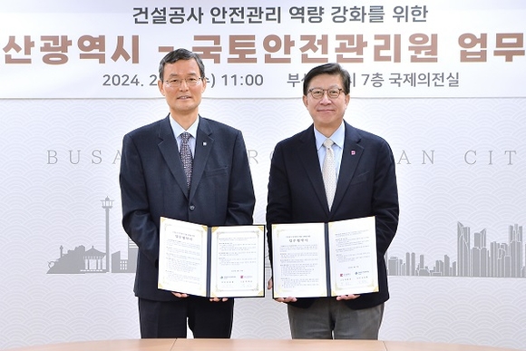 부산시가 14일 시청 국제의전실에서 국토안전관리원과 ‘건설공사 안전관리 역량 강화를 위한 업무협약’을 체결했다고 밝혔다.