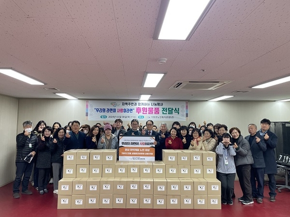 부산 기장군도시관리공단 기장군노인복지관이 지난 8일 지역주민과 함께하는 설 명절 나눔 행사 ‘우리의 라면이 사랑이라면’ 후원물품 전달식을 진행했다고 밝혔다.