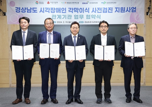 경남도는 19일 오후 도정회의실에서 '경상남도 시각장애인 각막이식 사전검진 지원사업' 추진을 위한 업무협약을 체결했다.