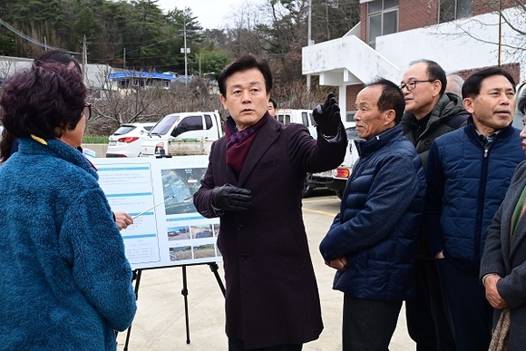 조규일 진주시장은 22일 대곡면 와룡리 송곡마을 일원 도로 개선 공사 현장을 방문해 진행상황을 점검하고 주민들의 의견을 청취했다.