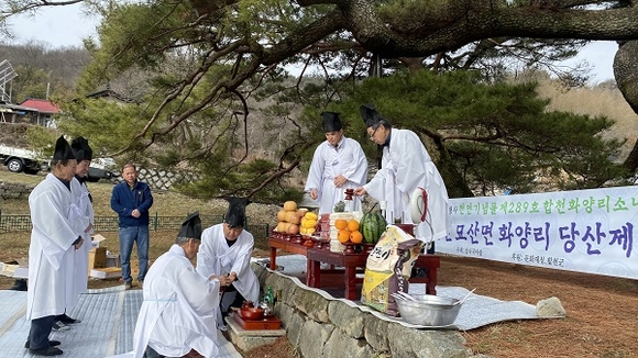 경남 합천군 묘산면 상나곡마을회는 정월 대보름날인 지난 24일 천연기념물 '합천 화양리 소나무'에서 마을 주민 20여명 참석한 가운데 당산제를 거행했다.